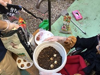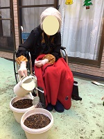 女性の入居者様に春の花の代表格チューリップとムスリカという花の球根を植えて頂きました☆