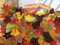 ダイソーさんで売っている葉っぱを職員が落ち葉のように加工しているのです!