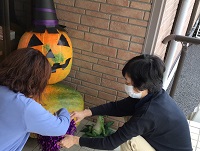 ハロウィンバージョンに大変身して玄関でお迎えしています(^^)/