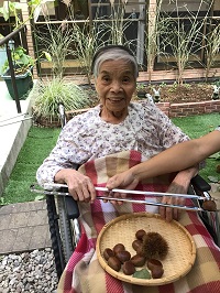 イガ付きもイガなしもトングで掴むのは少し難しくその分取れた時は 嬉しくて笑顔の入居者様です♡