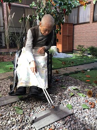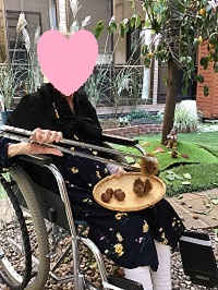 イガ付きの栗や栗の実を中庭に撒いて 入居者様に栗拾いを体験して頂きました!