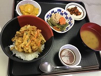 今日のランチメニューは「野菜のかき揚げ丼」です!