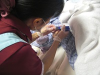 覗いてみると 素早く きれいに 入居者様の爪を切る職員!!