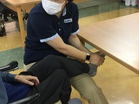 入居者様が機能訓練指導員と楽しそうにおしゃべりしながらリハビリをしていらっしゃいました。