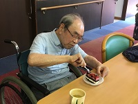 いつものように職員と入居者様でお祝いの歌を歌いました。
