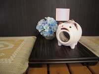 事務所前の小休憩スペースも夏仕様にすこしづつ変えております