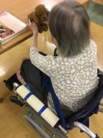 入居者様もワンちゃんと接している時はニッコリされています。
