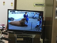 3密とならないよう間隔を保ちながら、大画面TVで「猿回し」「シャチショー」「セイウチショー」などご覧頂いております。
