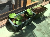今、一生懸命育てている巨大かぼちゃ(アトランティックジャイアント)が大きな葉を広げている様子を写真に撮っていらっしゃったのでした。