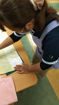 実は以前 職員全員分のマスクを手作りしてくれたスタッフの厳しい!?指導の元