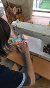 器用にミシンで縫っています。