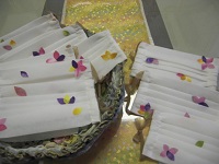 マスクの表面にいろいろな形の和紙を皆様につけて頂きました。