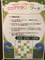 お手元にブログでお伝えした形式のクロスワードがない方は、送付させて頂きますのでお手数おかけして申し訳ありませんがご連絡くださいませね。(049-245-1000)