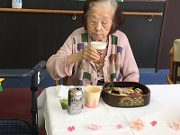 食卓を春らしく飾って、室内ではありますがお花見のような雰囲気を醸し出しました。