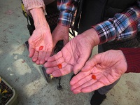 このかぼちゃの種って・・・赤くて結構大きいんです。