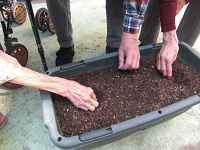 入居者様にもお手伝い頂き、中庭に種を植えます。