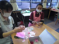 職員さんが折っている横で「あらまぁ~きれいな桜がたくさんね!!」