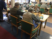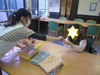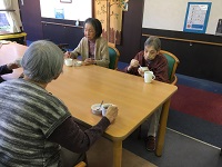 午後には入居者様にリハビリも兼ねてエプロンを畳むのを手伝って頂いております。
