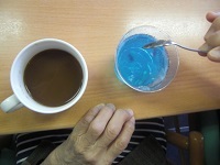 今日のスマイルカフェはコーヒーと金魚ゼリーです。