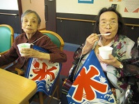 栄養士さん、ケアマネさん、相談員さんがかき氷器で必死になって作ってくれました。