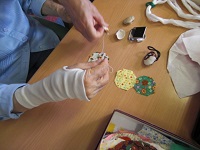 今日のお裁縫レクの日では、「根付け」をつくりました。