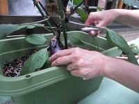 中庭を覗いてみると、茄子と胡瓜が1本づつ実っていました。