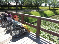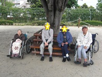 皆で園内を散策、、、、途中ベンチで一休みです。
