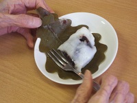 今日のおやつは5月5日恒例の厨房さん手作り柏餅です。