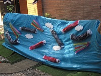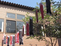 爽やかな春の風を受けながら真鯉・緋鯉・吹き流しが空を優雅に泳いでおります。