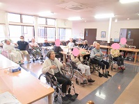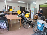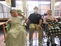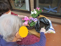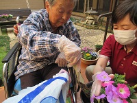 職員とも相談して入居者様にはペチュニアを植えいただいて