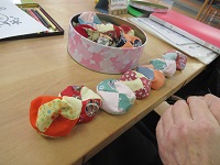 小さなお手玉をうまく積み上げるのは集中力もいります♬