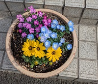 玄関先には3種類の寄せ植えを飾るようにしました♬