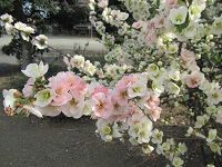 また八雲神社内のバス通り沿いにはボケの木が綺麗に咲いていますので