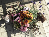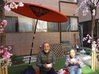 今も周囲の満開の桜に負けず、玄関先では色とりどりの春の花が