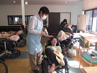 入浴後は順番にドライヤーで髪をセットしてもらったり