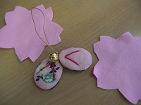 出来上がったストラップは、春らしくピンク色でとってもかわいいものでした。