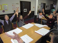 歌の途中で万歳など体を動かしながら楽しく過ごして頂きました。