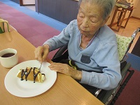 今月の特別おやつは厨房さん手作り『オムレットケーキ』