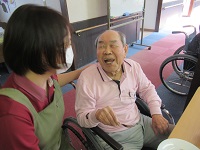 美味しかったよといつも厨房さんに挨拶して下さるO様、職員と嬉しそうに