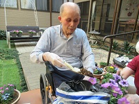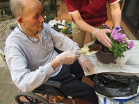 毎年恒例となっているプランター作りを入居者様にも手伝っていただきました♬