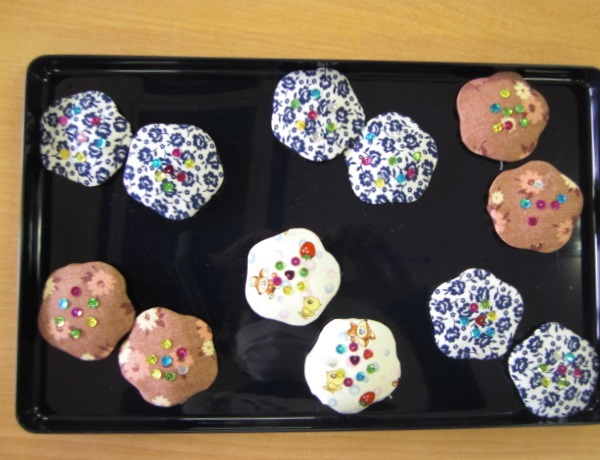 丸い布の中に綿を詰め、同じ2つを縫い合わせ、、、