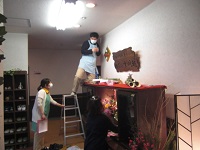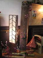 節分の鬼のお面、、、お琴にも梅の花を散りばめ