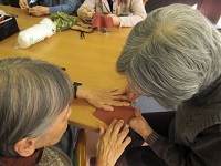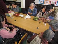 なかなか作業が進まず、、、ご入居様同志指導されたり