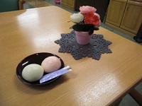 そして、おやつにも「紅白まんじゅう」をご提供。