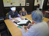 午後のレクの時間は「福笑い」です。
