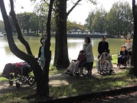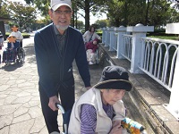 ご家族様にも一緒に付き添って頂きながら、池のまわりをゆっくりゆっくり・・・