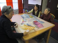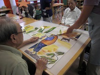 1.9分割にばらばらにされた「かぐや姫」にちなんだ絵(もともと1枚の大きな絵だったもの)を入居者様同士協力してもとの絵に戻す。