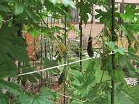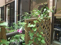 中庭の家庭菜園もわずかな朝顔と育ちの遅いゴーヤ2個となり
