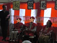入居者様を代表して『米寿』の女性3名様に赤いちゃんちゃんこを着てもらい、長寿のお祝いをさせて頂きました。
