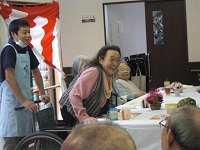職員が辛さに悲鳴をあげたり顔中生クリームでいっぱいになったりする様子に入居者の皆様大笑い!!